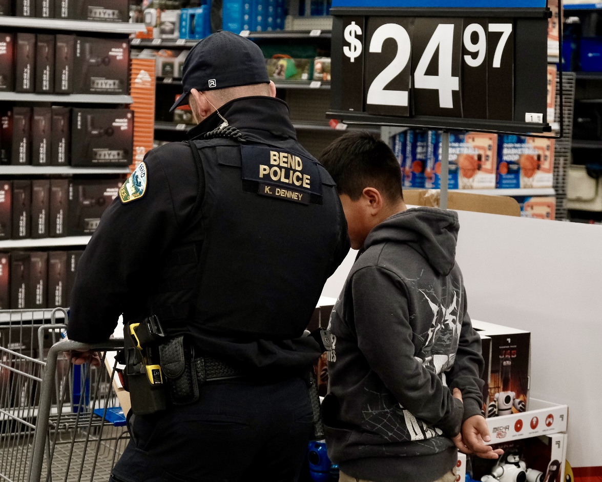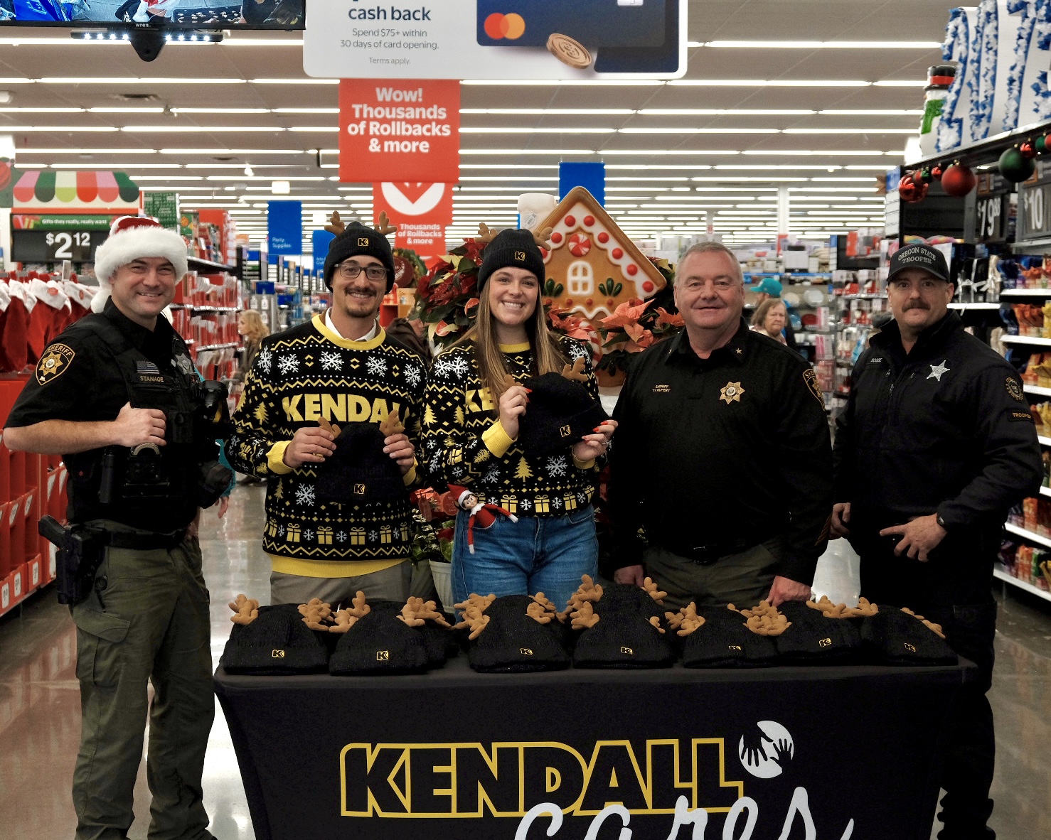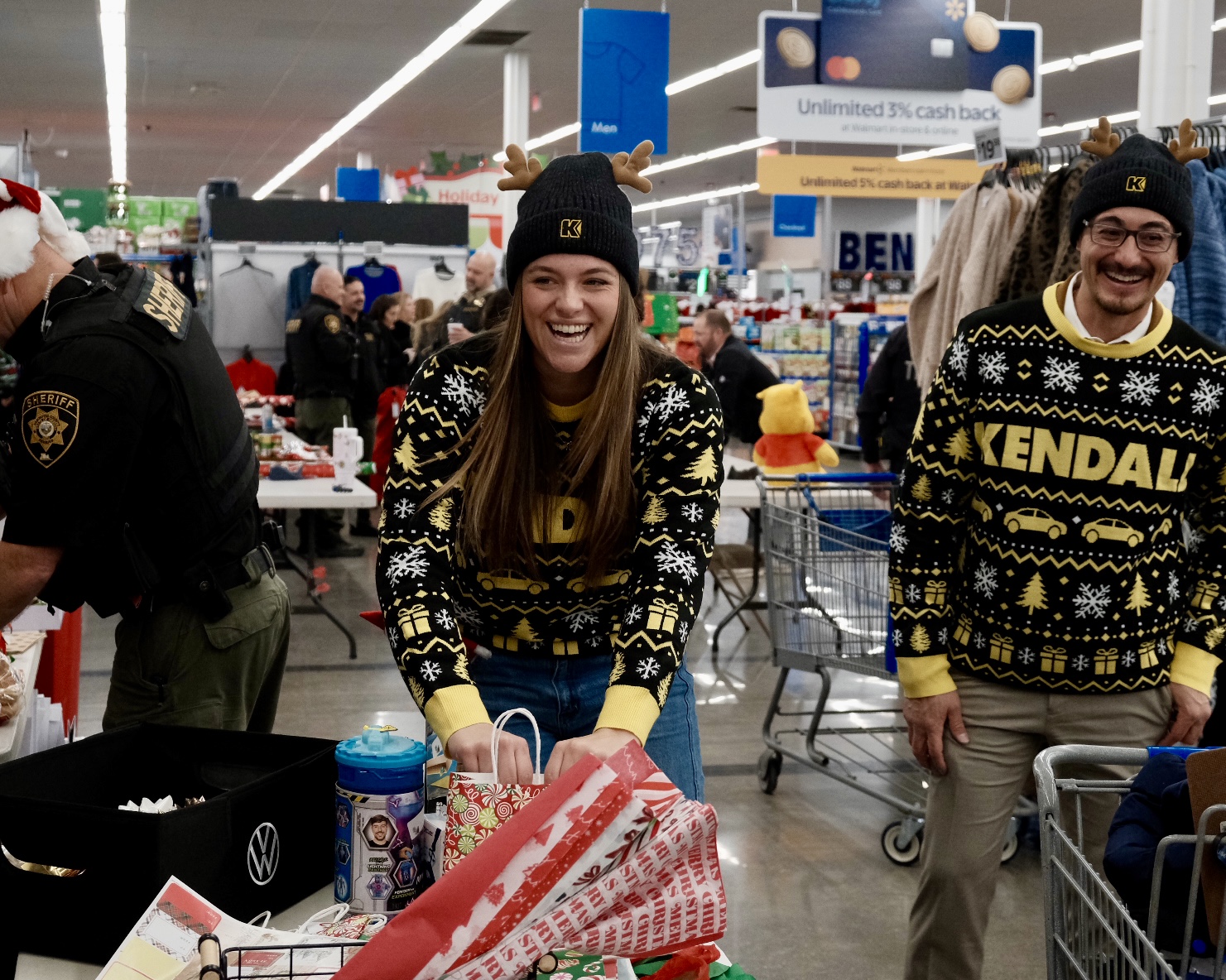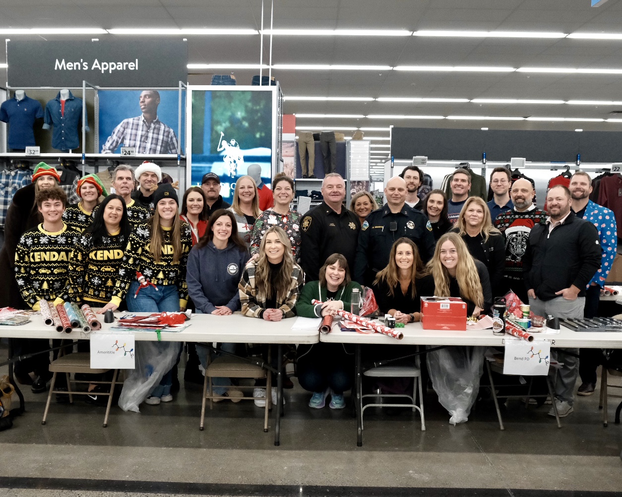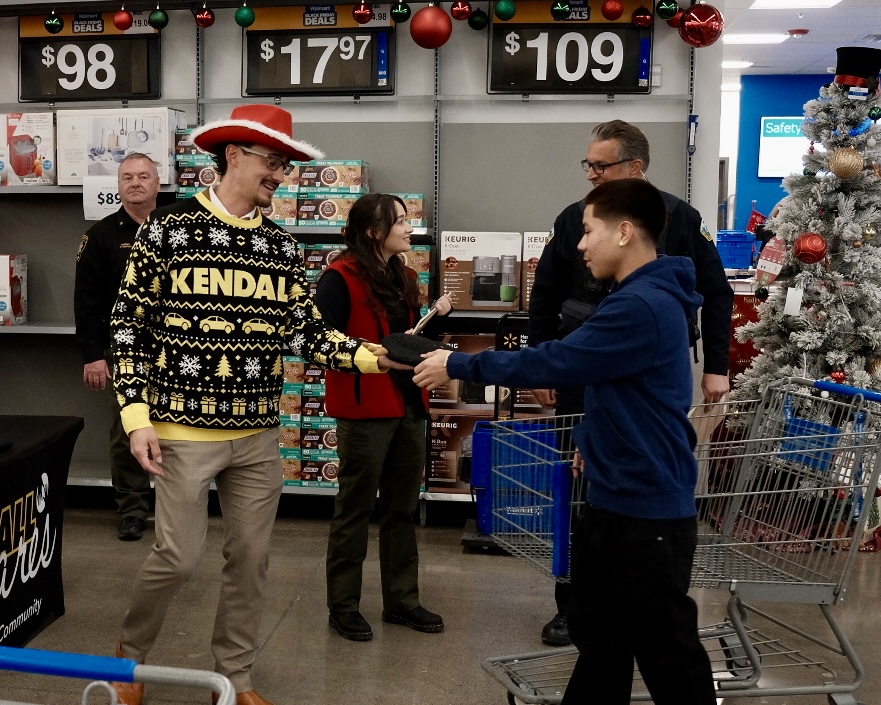 On Day Two of 12 Days of Caring, Kendall Central Oregon joined the Deschutes County Sheriff’s for their annual Shop with a Cop event! Students were nominated for an unforgettable Holiday experience, getting the opportunity to shop at Walmart with a deputy. Oregon State Police, Deschutes County Sheriff’s, and Bend PD picked up the selected kids from school and brought them to Walmart, where they shopped for gifts for their family members. When the kids were done shopping, they brought their carts to the Kendall team and many other community volunteers to be wrapped! We are amazed at the thoughtfulness of each gift, including blankets for mom, Lilo & Stitch toys for siblings, and work boots for dad.