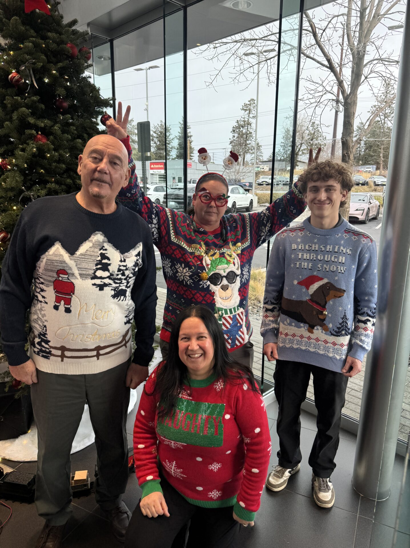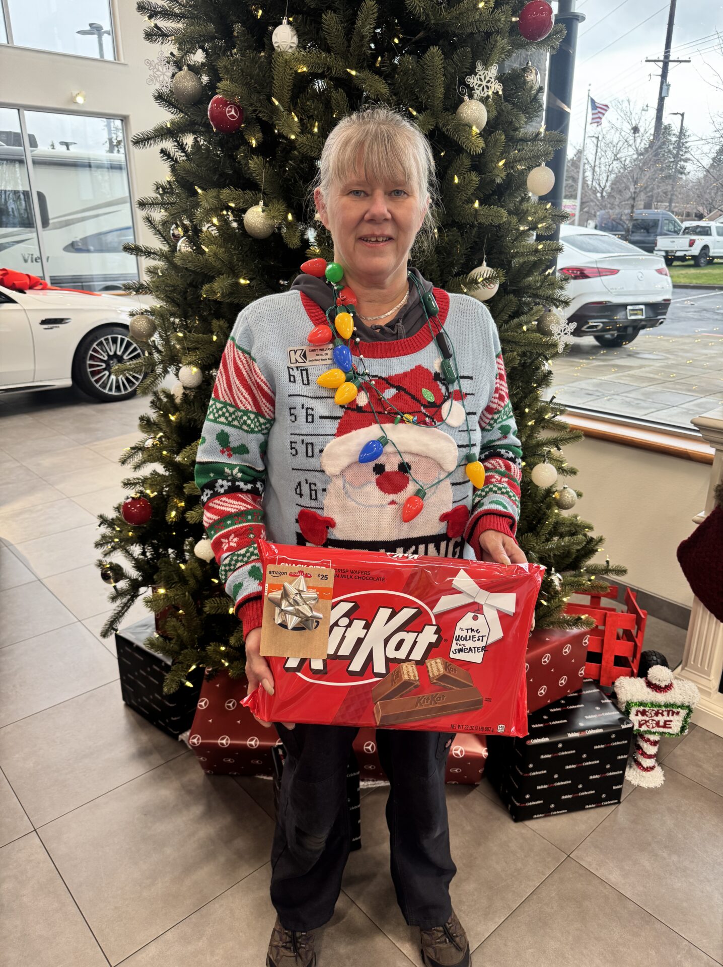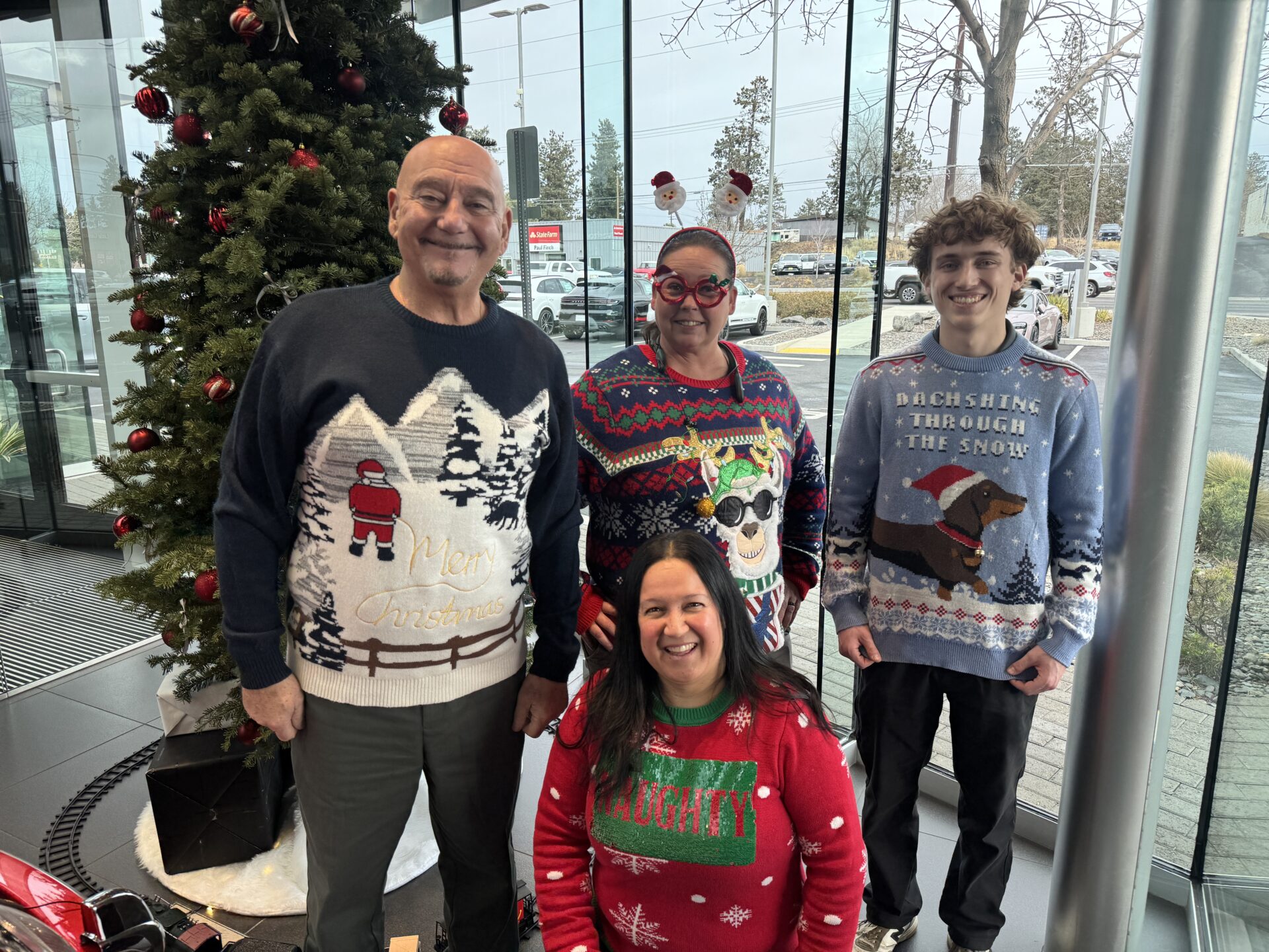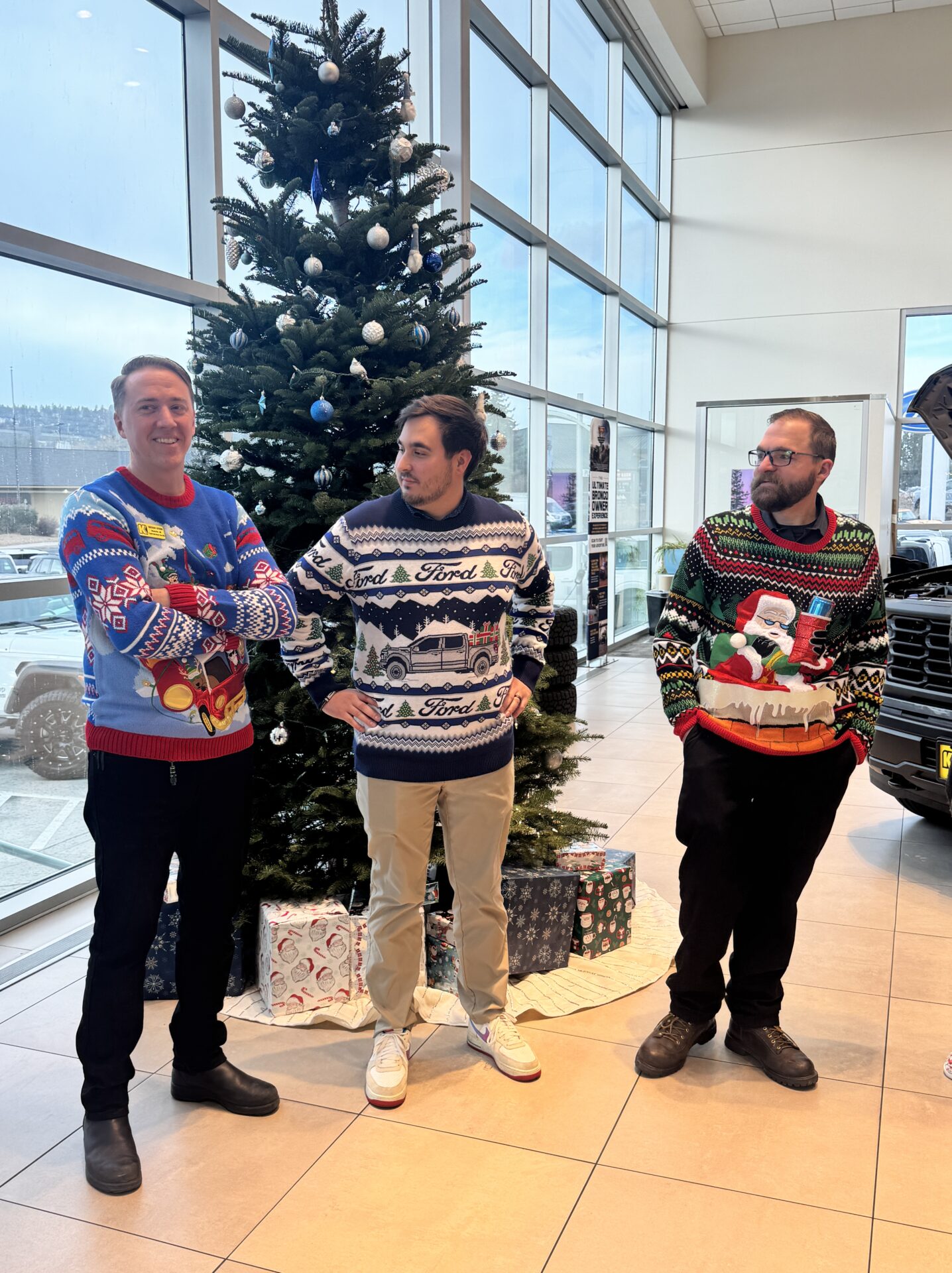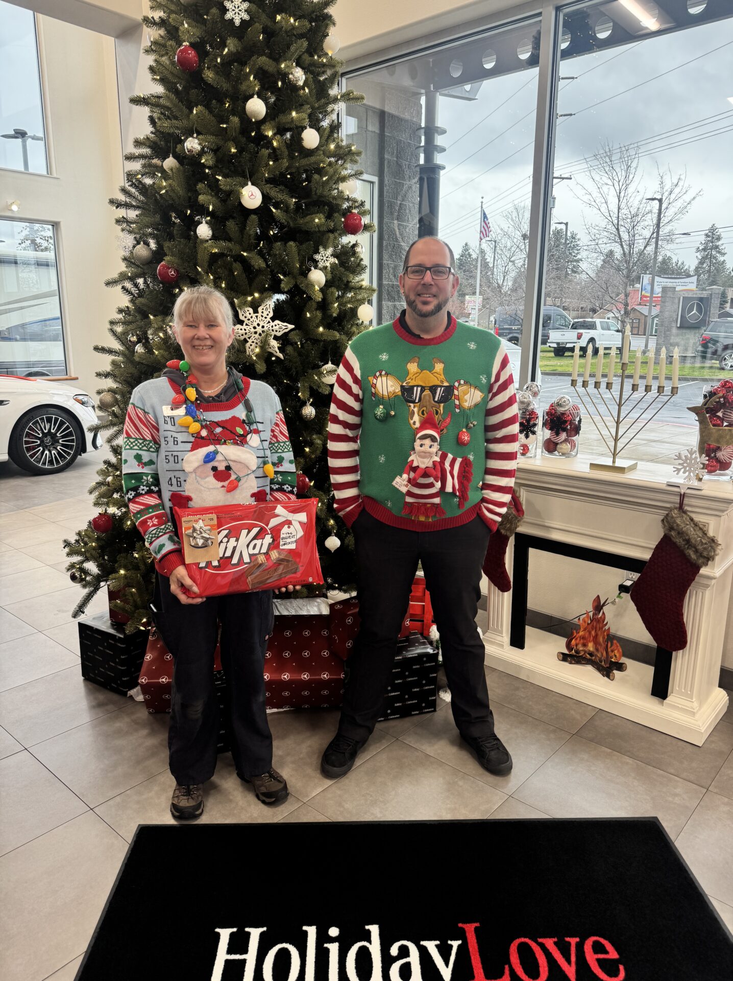 On the 4th Day of 12 Days of Caring, Yule have to excuse our ugly sweaters! The Kendall Central Oregon team dressed in their Holiday best (worst) sweaters and not only showed their 12 Days spirit, but their best sparkles and knits too. Each store voted for their favorites and each winner received a gift card to support with their Holiday shopping and a mega-size candy bar. We even had a customer at Kendall Ford of Bend volunteer to be the judge and each staff member had to give a pitch on why their sweater is the best! Let’s keep this magical, and ugly, cheer up!