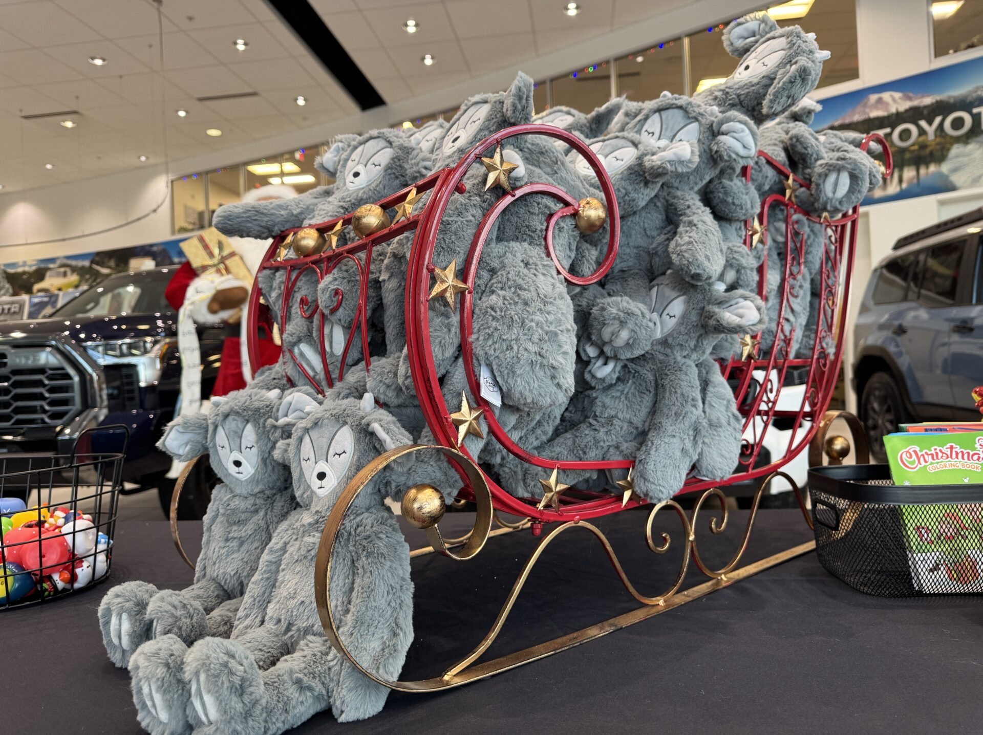 With 12 pallets of toys stacked high like Santa’s sleigh,