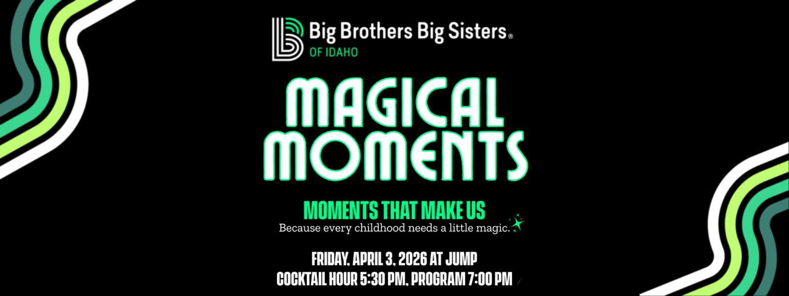 On April 3rd join us for a meaningful night of inspiration, connection, and impact. Cocktail hour begins at 5:30 p.m., with the program starting at 7:00 p.m. Dinner and dessert will be served, and cocktail attire is appreciated. Guests are encouraged to wear black or green (optional). We hope you’ll join us in showing up for local youth and being part of something truly magical.