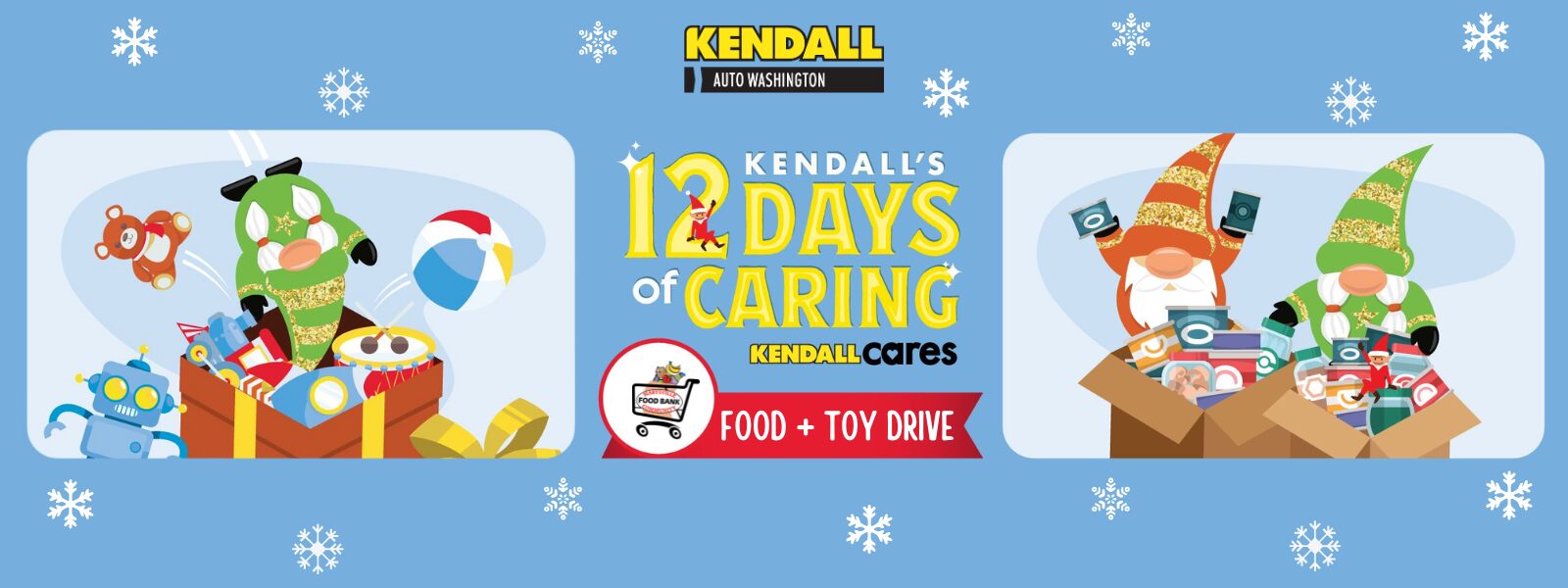 Kendall Auto Washington is proud to work with the Marysville Community Food Bank to help provide those in our community with food and toys this holiday season. Beginning November 7th, Kendall Auto Washington will have bins available at the below locations to donate to our local Food Bank. The bins will be on-site until Wednesday,